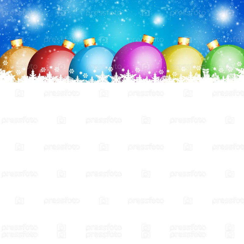 Елочные шары и белые снежинки