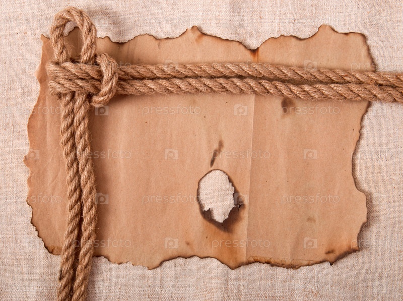 Узел и старая бумага на фоне старой ткани
