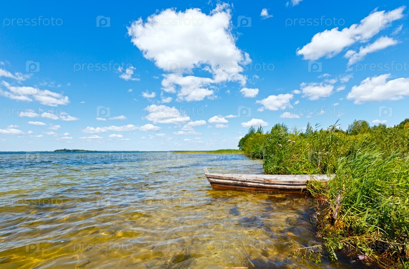 Озеро с деревянной лодкой