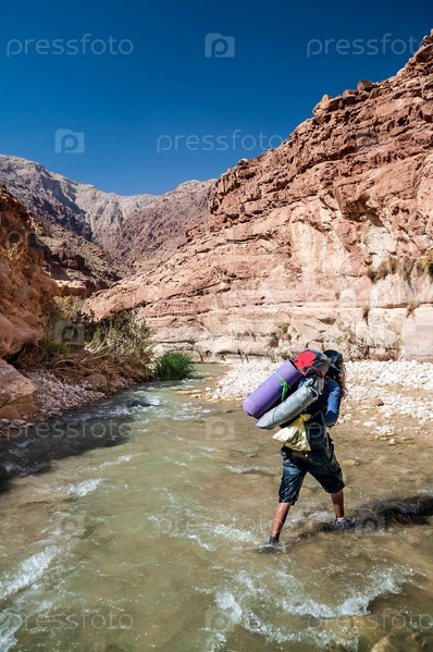 Человек пересекает ручей
