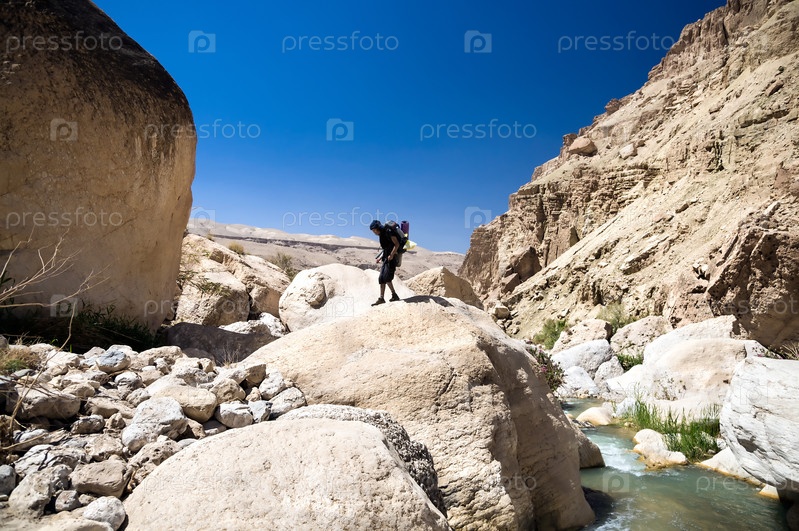 Турист на вершине валуна