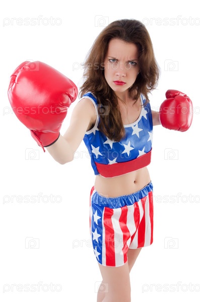 Женщина боксер в форме с символикой США