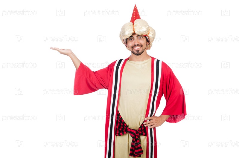 Фокусник в костюме, изолированный на белом