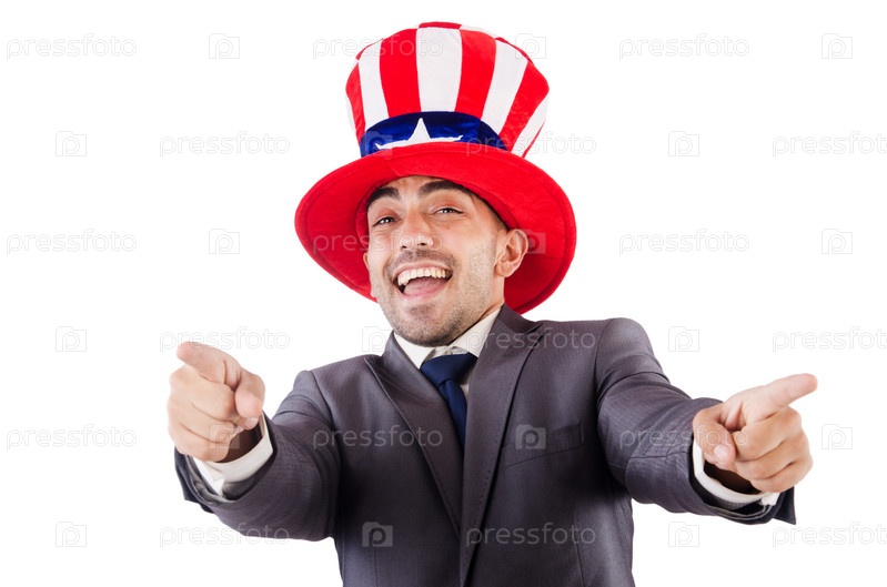 Человек в американской шляпе на белом фоне