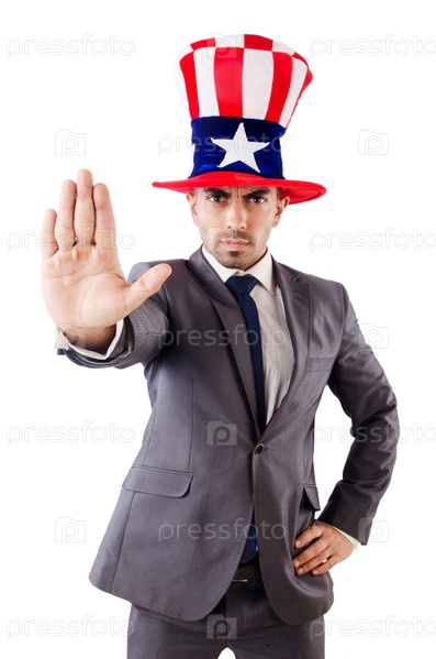 Человек в американской шляпе на белом фоне