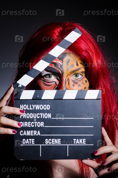 Женщина в гриме с хлопушкой