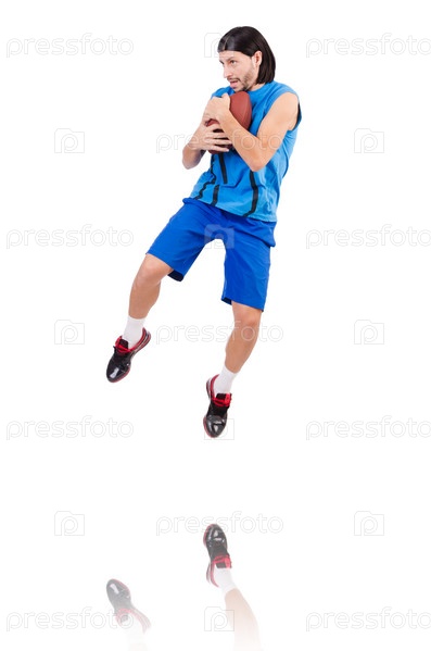 Молодой американский футболист на белом фоне