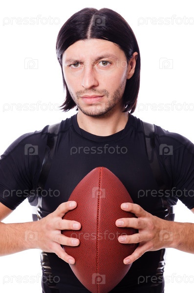 Молодой американский футболист на белом фоне