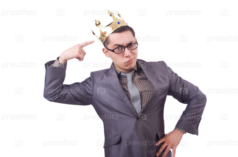 Бизнесмен в короне, изолированный на белом