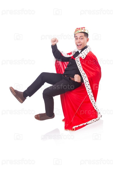 Бизнесмен в короне, изолированный на белом