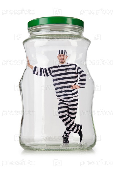 Заключенный в банке, изолированный на белом