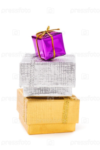 Три подарочные коробки на белом фоне