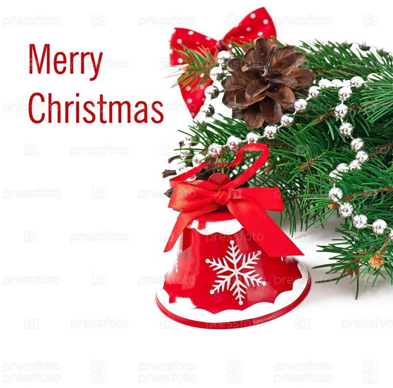 Рождественская открытка с колокольчиком и елкой