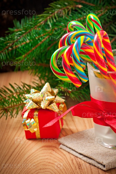Рождественские конфеты на деревянном фоне