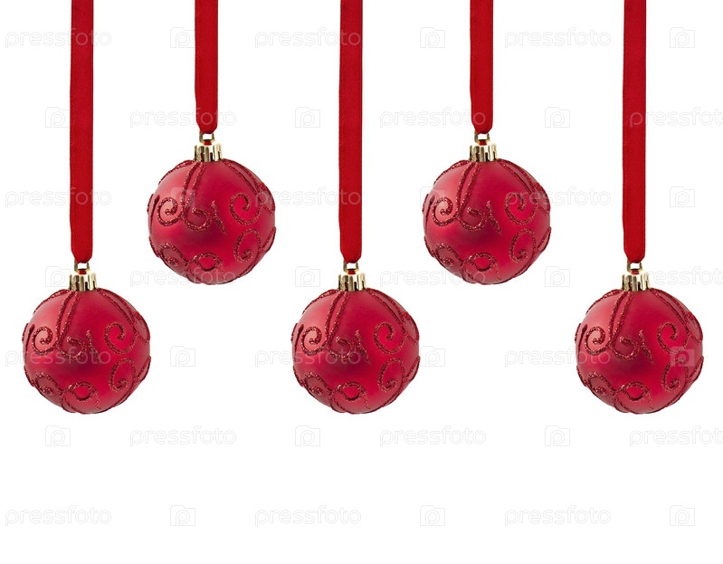 Красные елочные шары, изолированные на белом фоне