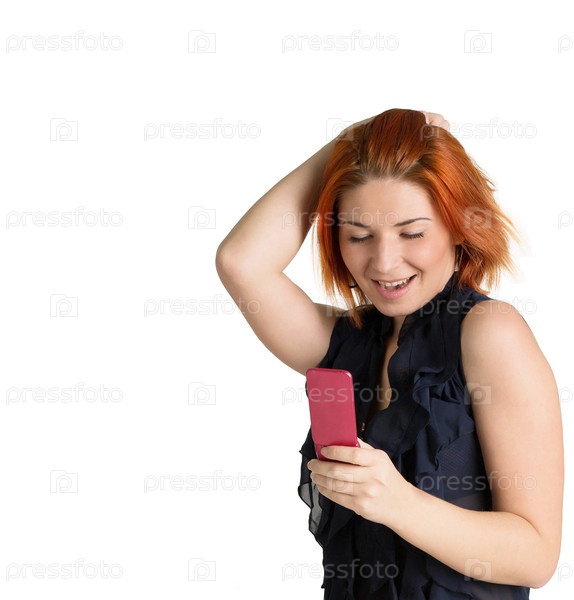 Счастливая рыжая девушка разговаривает по телефону