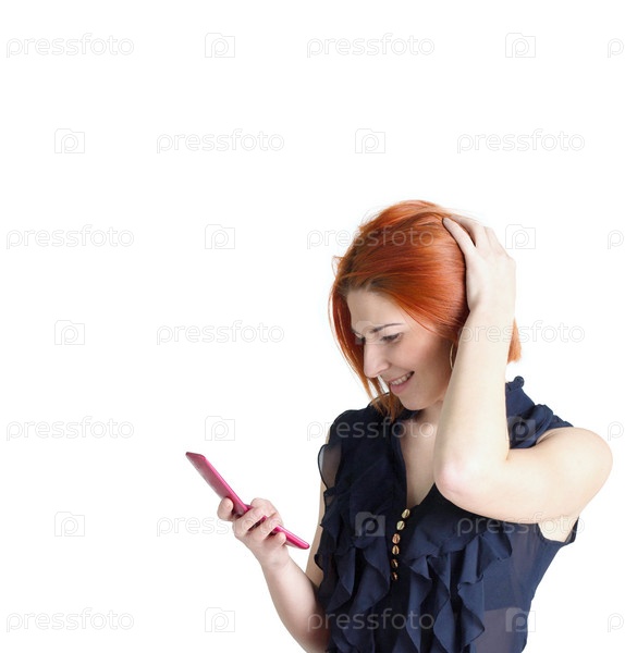 Счастливая рыжая девушка разговаривает по телефону