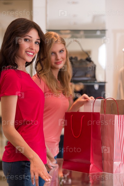 Молодые девушки с сумками в магазине