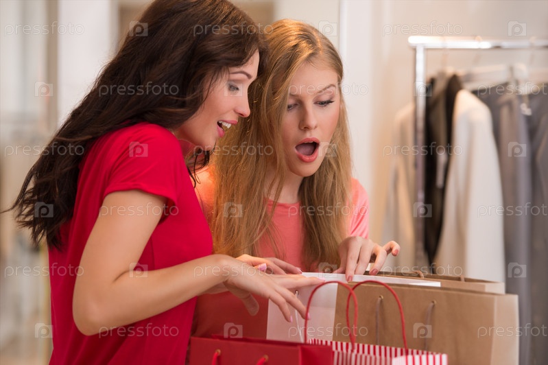 Молодые девушки с сумками в магазине