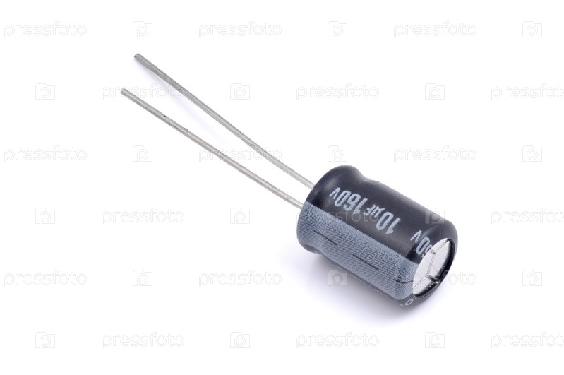 Электролитический конденсатор, изолированный на белом