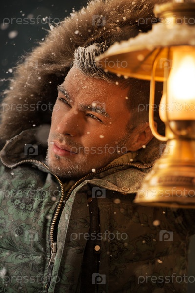 Мужчина с фонарем в метель