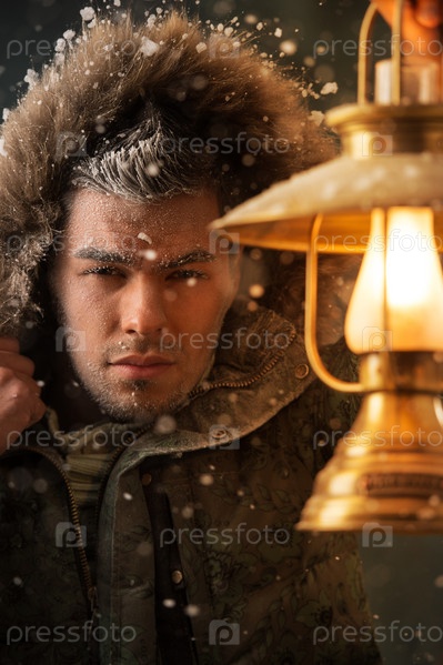 Мужчина с фонарем в метель