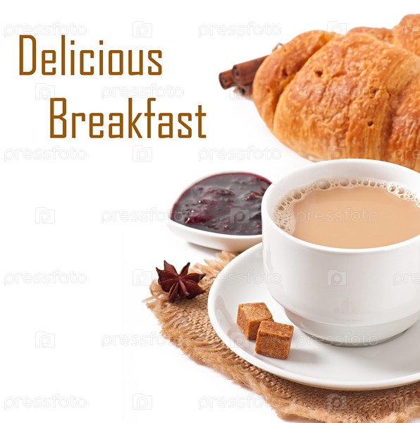 Завтрак с кофе и свежими круассанами