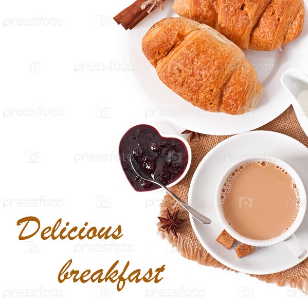 Завтрак с кофе и свежими круассанами