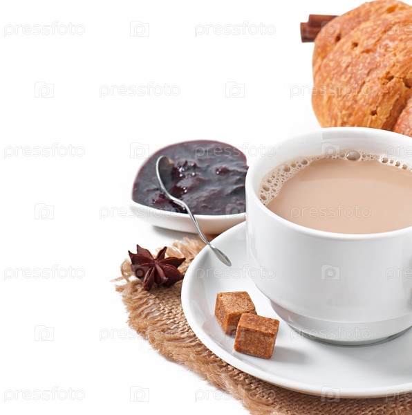 Завтрак с кофе и свежими круассанами