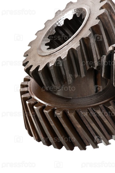 Шестерни дифференциала, изолированные на белом фоне