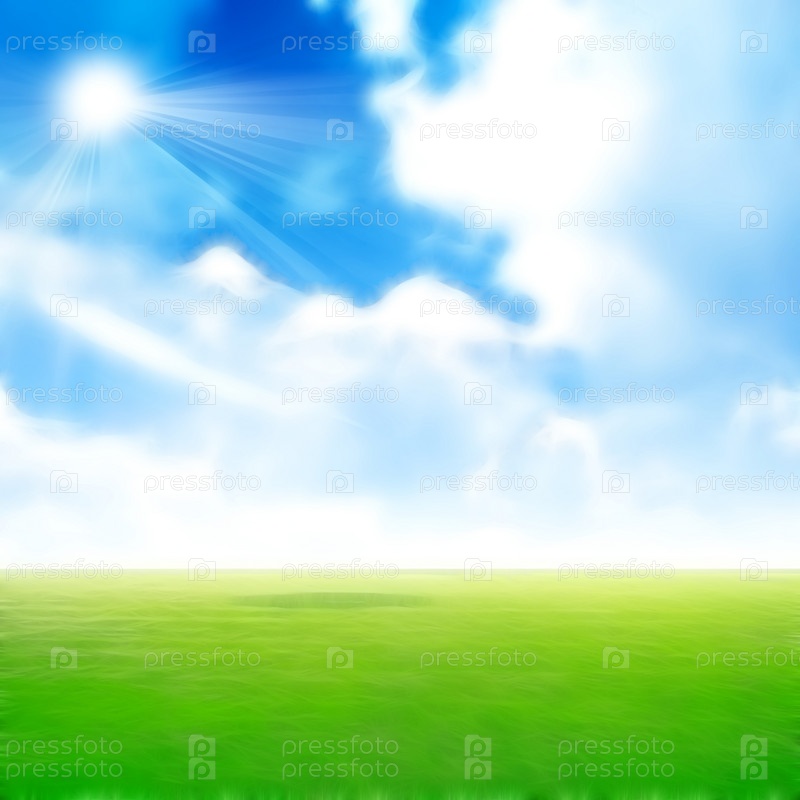 Иллюстрация с изображением зеленого солнечного луга