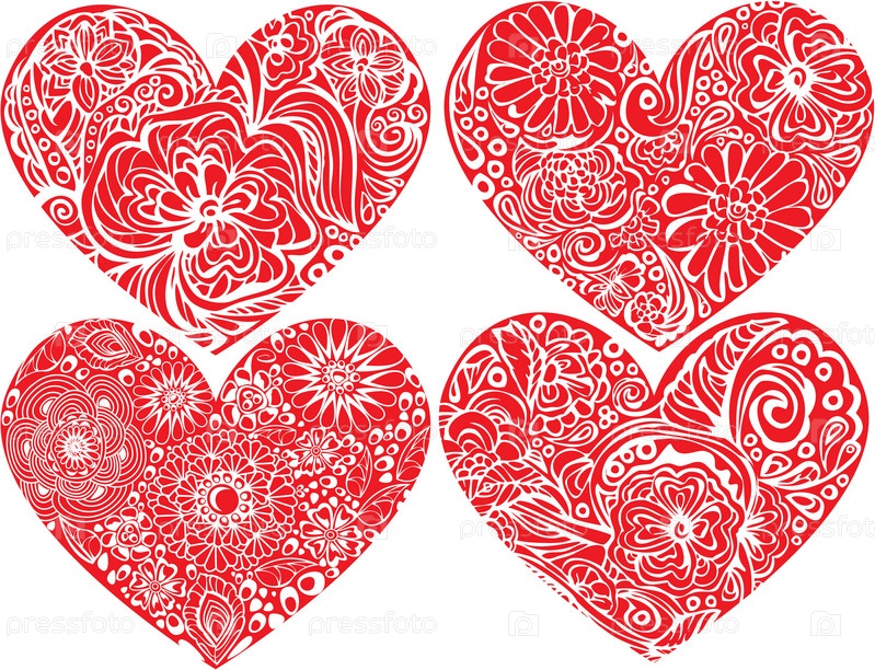 Набор сердец с цветочными орнаментами
