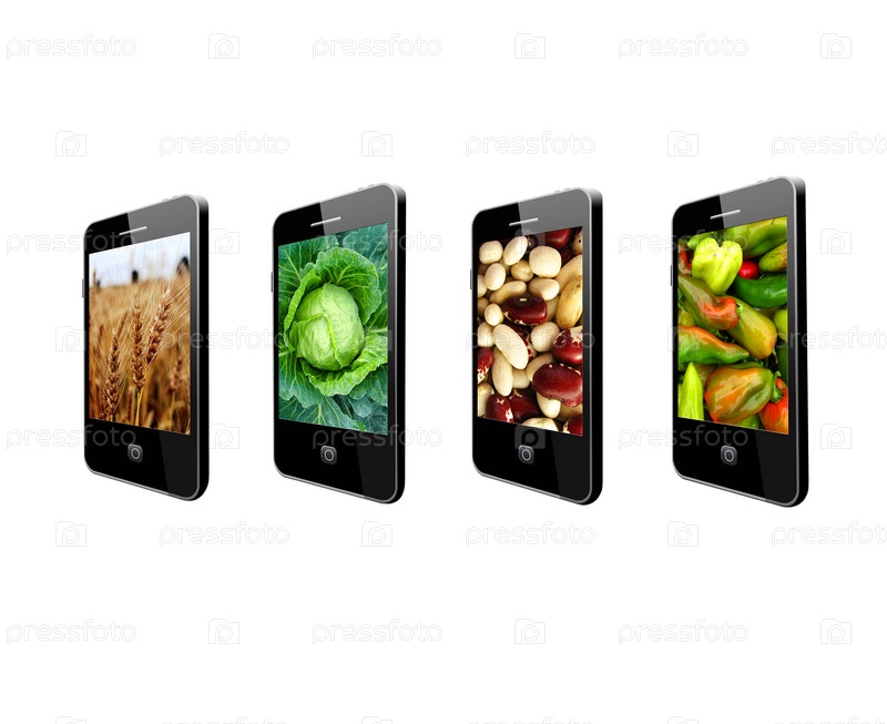 Мобильные телефоны с изображениями различных овощей