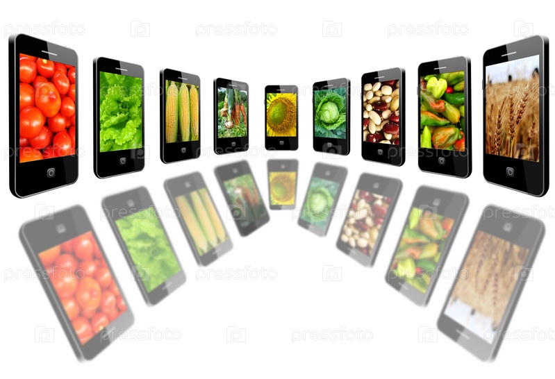 Мобильные телефоны с изображениями различных овощей