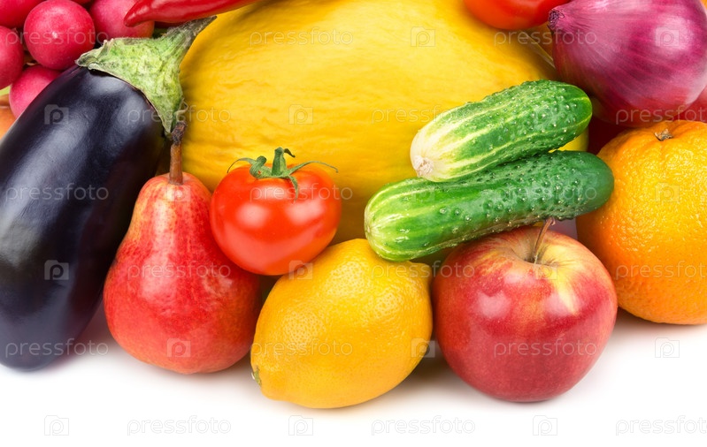 Фрукты и овощи, изолированные на белом фоне