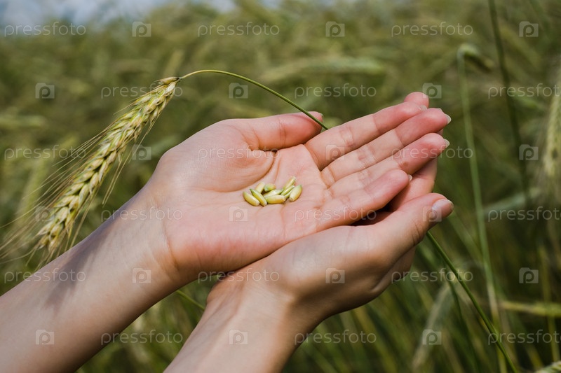 Зерно пшеницы в руках
