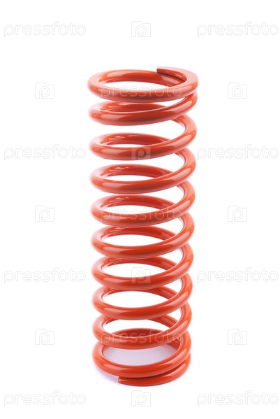 Красная металлическая пружина на белом фоне