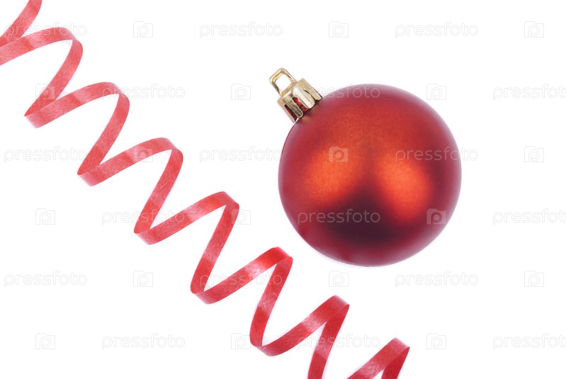 Красный елочный шар и серпантин