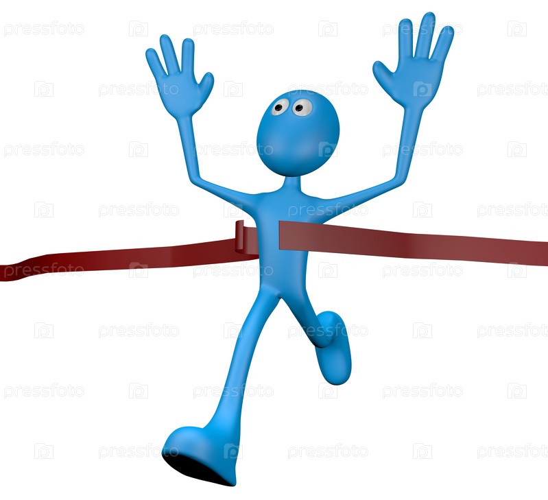 Мультипликационный персонаж пересекает финишную прямую - 3d иллюстрация