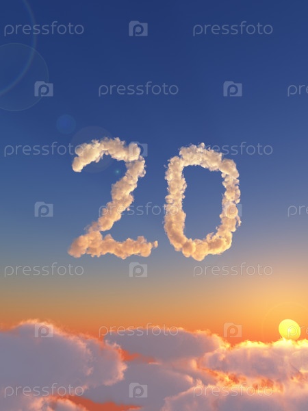 Число 20 на небе - 3D иллюстрация