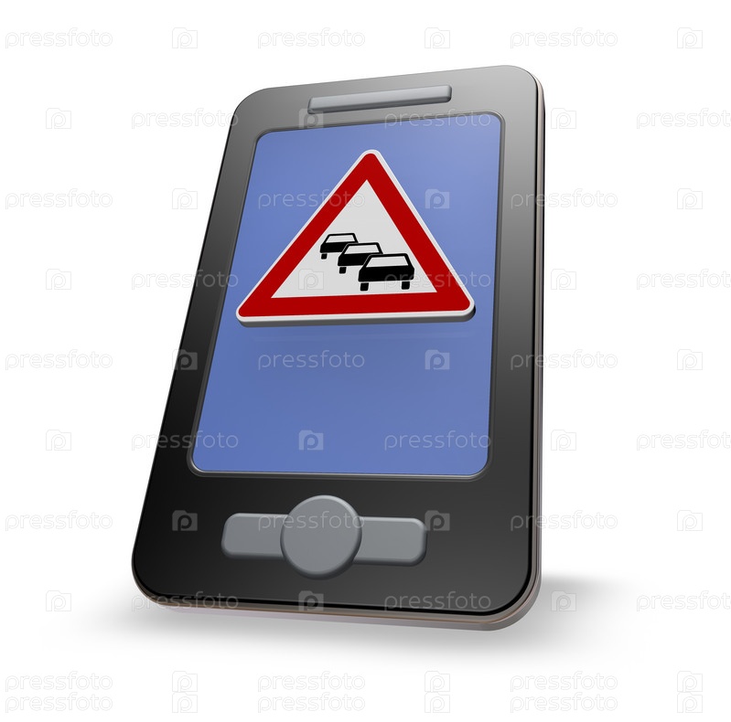 Телефон с дорожным знаком на белом фоне - 3d иллюстрация
