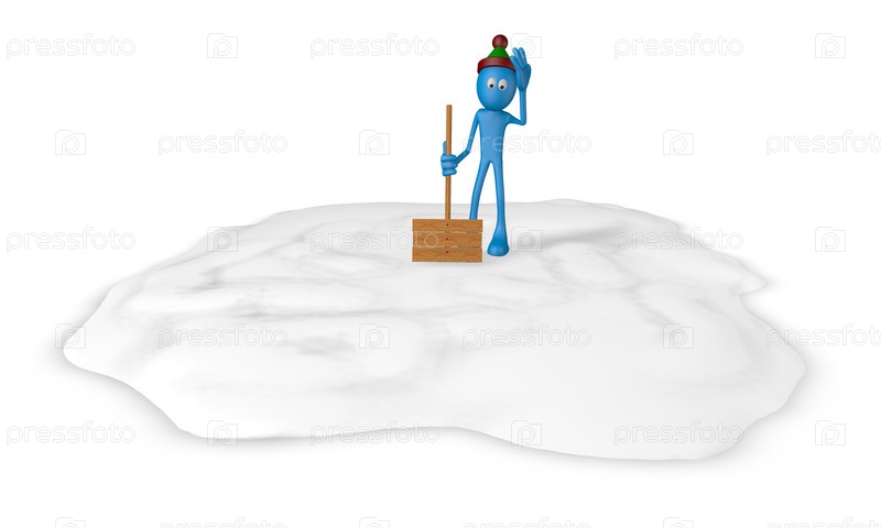 Мультипликационный человек со снежной лопатой, 3d иллюстрация