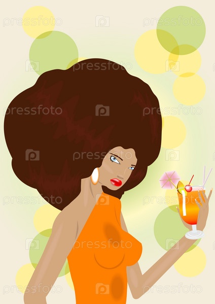 Девушка с пышной прической и с коктейлем в руках
