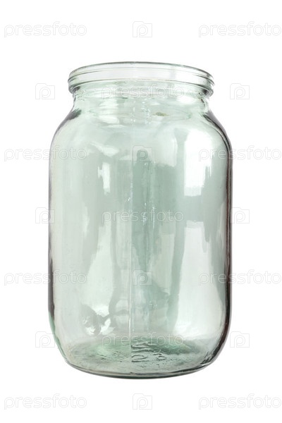 Пустая стеклянная банка, изолированная на белом фоне