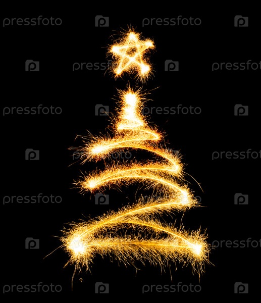 Елка из искр на черном фоне