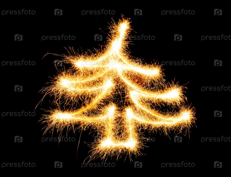 Елка из искр на черном фоне