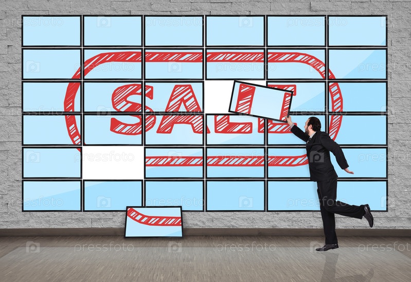 Плазменная панель с надписью о распродаже