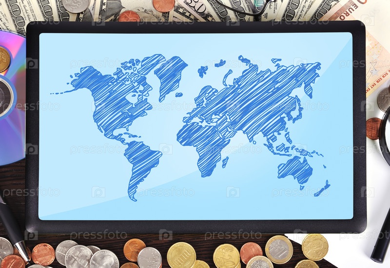 Планшет с картой мира