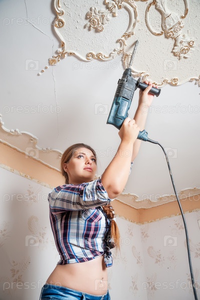 Привлекательная женщина с дрелью