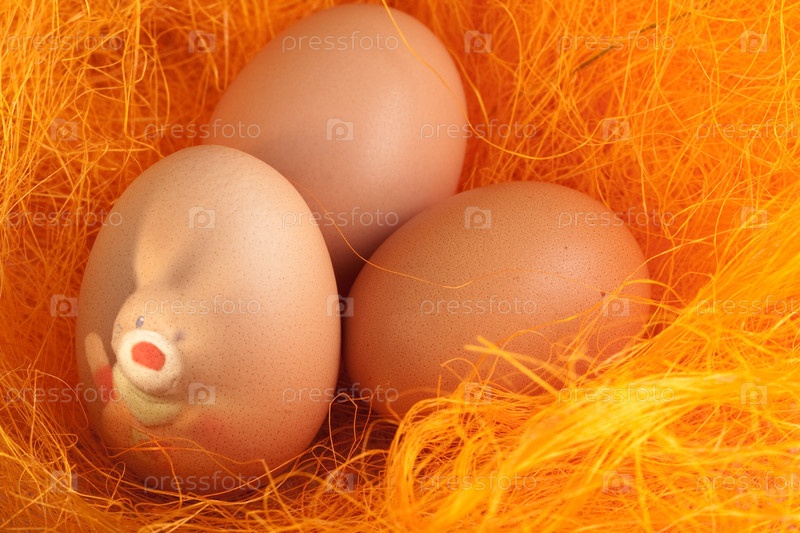 Пасхальные яйца с зайцем в гнезде